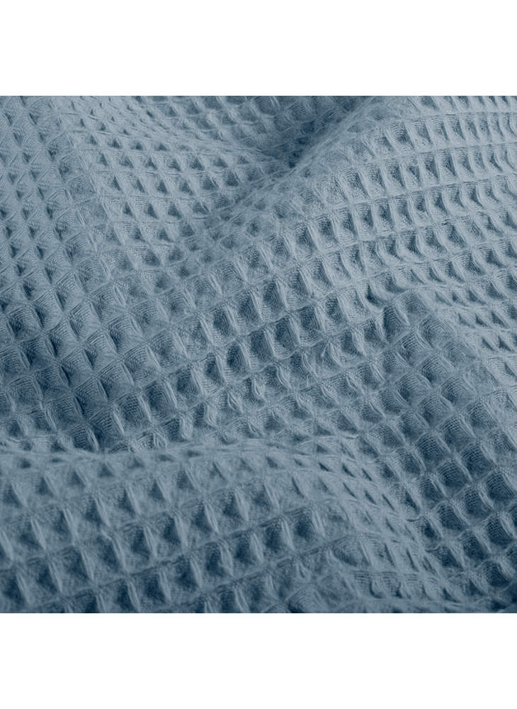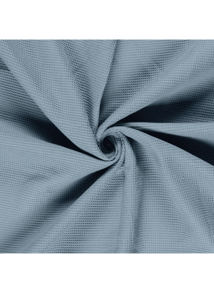 Wafelkatoen is een prachtig geweven stof met een kenmerkende reliëfstructuur die lijkt op kleine ruitjes of wafeltjes. Deze bijzondere textuur maakt de stof niet alleen mooi om te zien, maar ook extra absorberend, ademend en comfortabel in gebruik.