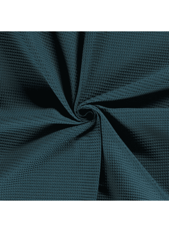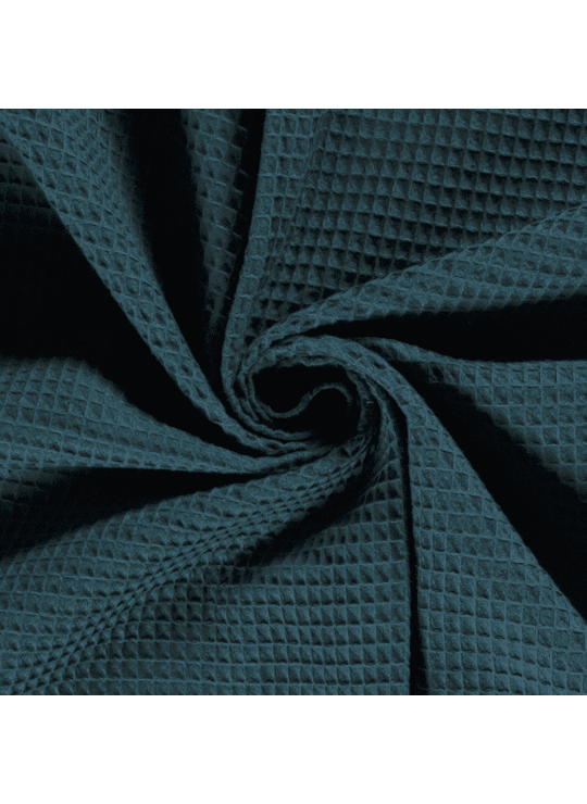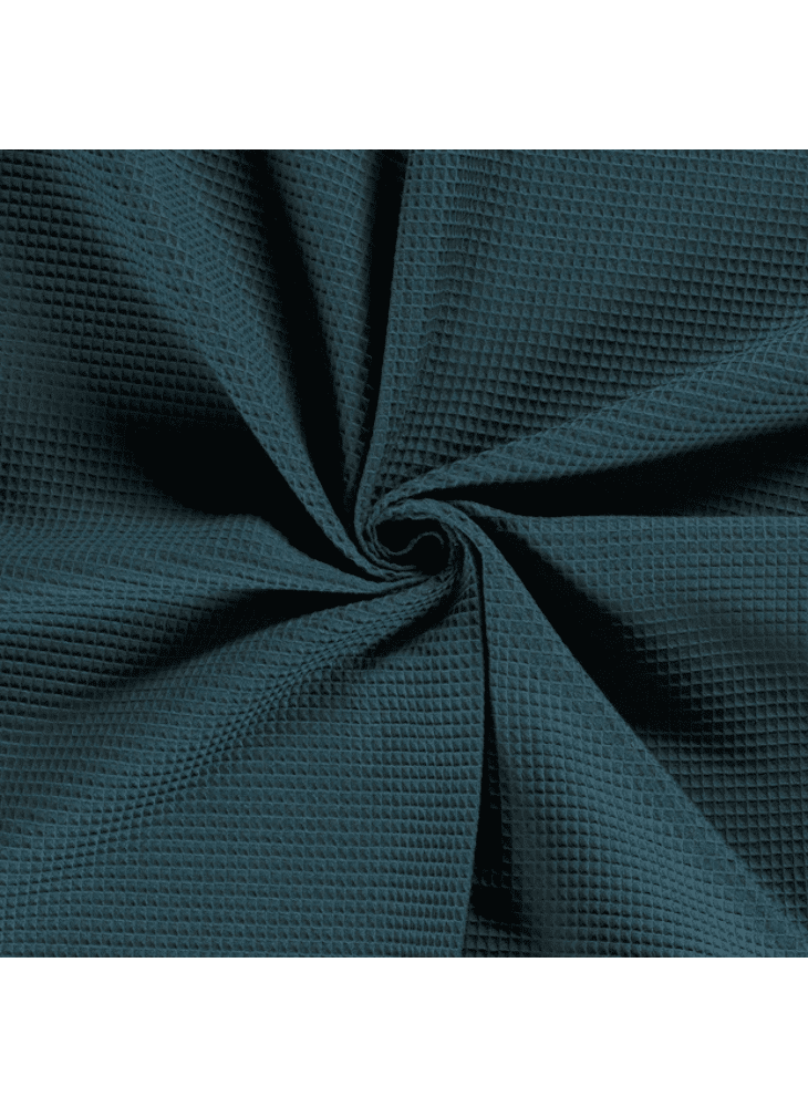 Wafelkatoen is een prachtig geweven stof met een kenmerkende reliëfstructuur die lijkt op kleine ruitjes of wafeltjes. Deze bijzondere textuur maakt de stof niet alleen mooi om te zien, maar ook extra absorberend, ademend en comfortabel in gebruik.