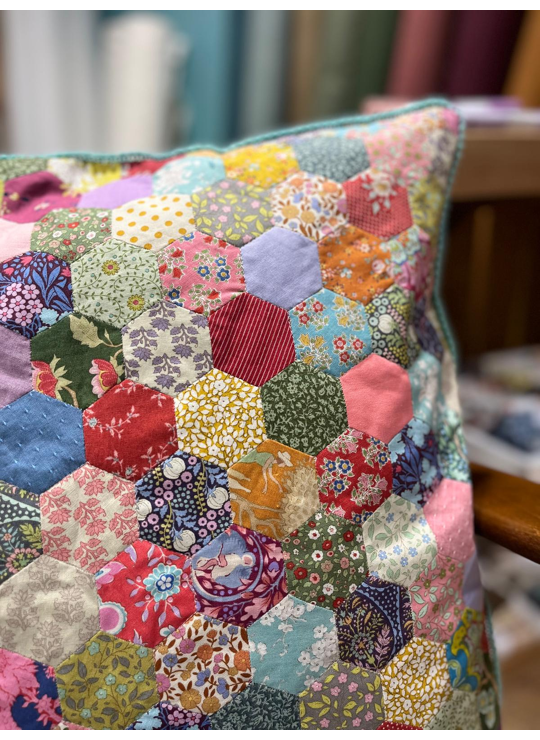 EPP is een ideale techniek voor wie graag nauwkeurig werkt en houdt van handwerk. Je kan het overal meenemen en het leent zich perfect tot creatief spelen met kleur, vorm en compositie. In deze workshop leer je hoe je de stof netjes voorbereidt, hoe je de hexagonen aan elkaar zet en hoe je een mooi en strak resultaat krijgt.