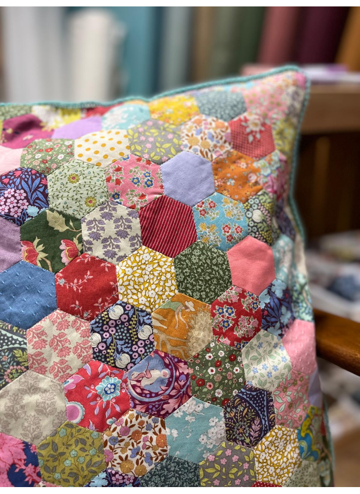 Ontdek de rust en precisie van English Paper Piecing, een traditionele patchworktechniek waarbij je met de hand naait rond papieren vormpjes. Tijdens deze workshop werken we met hexagonen die we stap voor stap aan elkaar naaien tot een harmonieus geheel.
